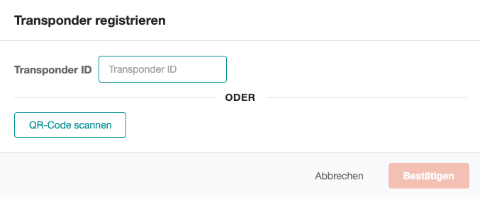 Für die Verwaltung der Transponder von Offline-Nutzern, also Konten ohne hinterlegte E-Mail-Adresse, steht Ihnen das Portal zur Verfügung. Um einen Transponder zu aktivieren, benötigen Sie die Transponder ID, die sich auf der Rückseite des Transponders befindet. Um die ID nicht manuell eingeben zu müssen, haben Sie die Möglichkeit, den QR-Code auf der Transponder-Rückseite zu scannen.