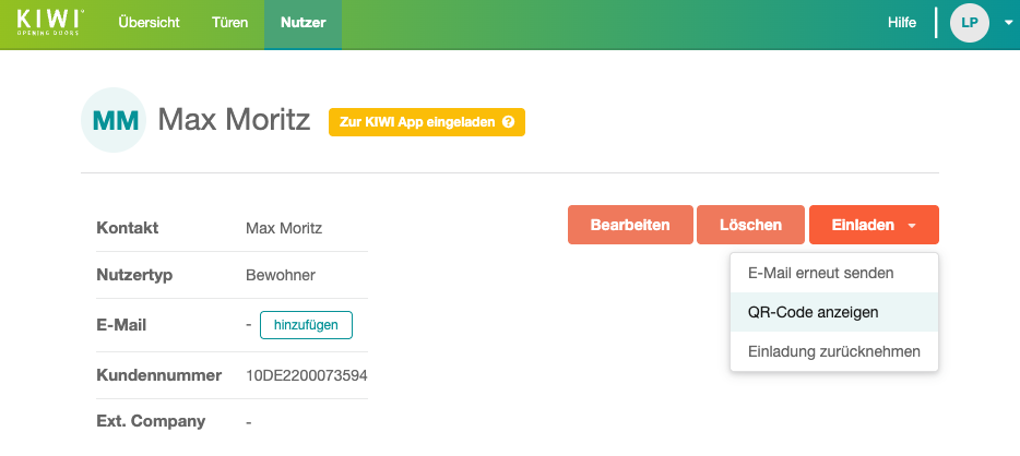 Einen bestehenden Nutzer zu den KIWI Apps einzuladen, war bisher nur mit der Transponder PIN und der Kundennummer oder der E-Mail-Adresse des Nutzers möglich. Ab sofort ist der Prozess wesentlich leichter. Dies bietet Ihnen flexible Optionen für das Onboarding Ihrer Mitarbeiter, Mieter oder Dienstleister.